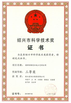 紹興市科學(xué)技術(shù)獎(jiǎng)-奧硝唑