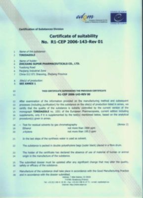 替硝唑COS證書(shū)