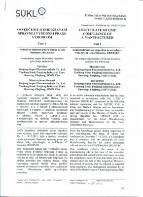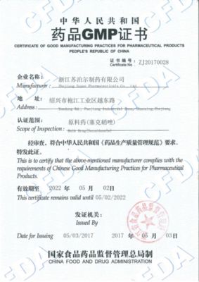 塞克硝唑GMP證書(shū)